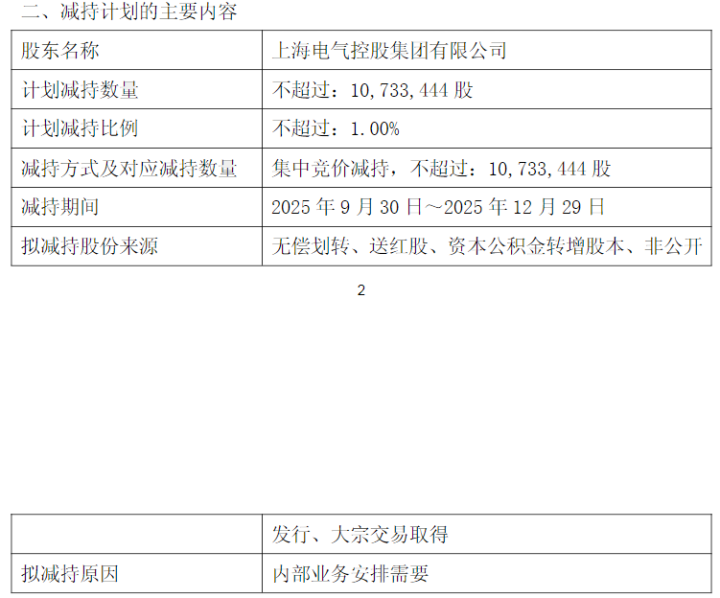 在股价创新高后不久,海立股份的控股股东拟进行减持。9月8日晚间,海立股份发布了关于控股股东减持股份计划的公告。该公告显示,因自身内部业务安排需要,公司控股股东上海电气控股集团有限公司(以下简称“电气控股”)拟通过集中竞价交易的方式减持不超过10733444股公司股份,减持比例不超过公司总股本的1%。截至目前,电气控股及其一致行动人合计持股比例为28.96%。